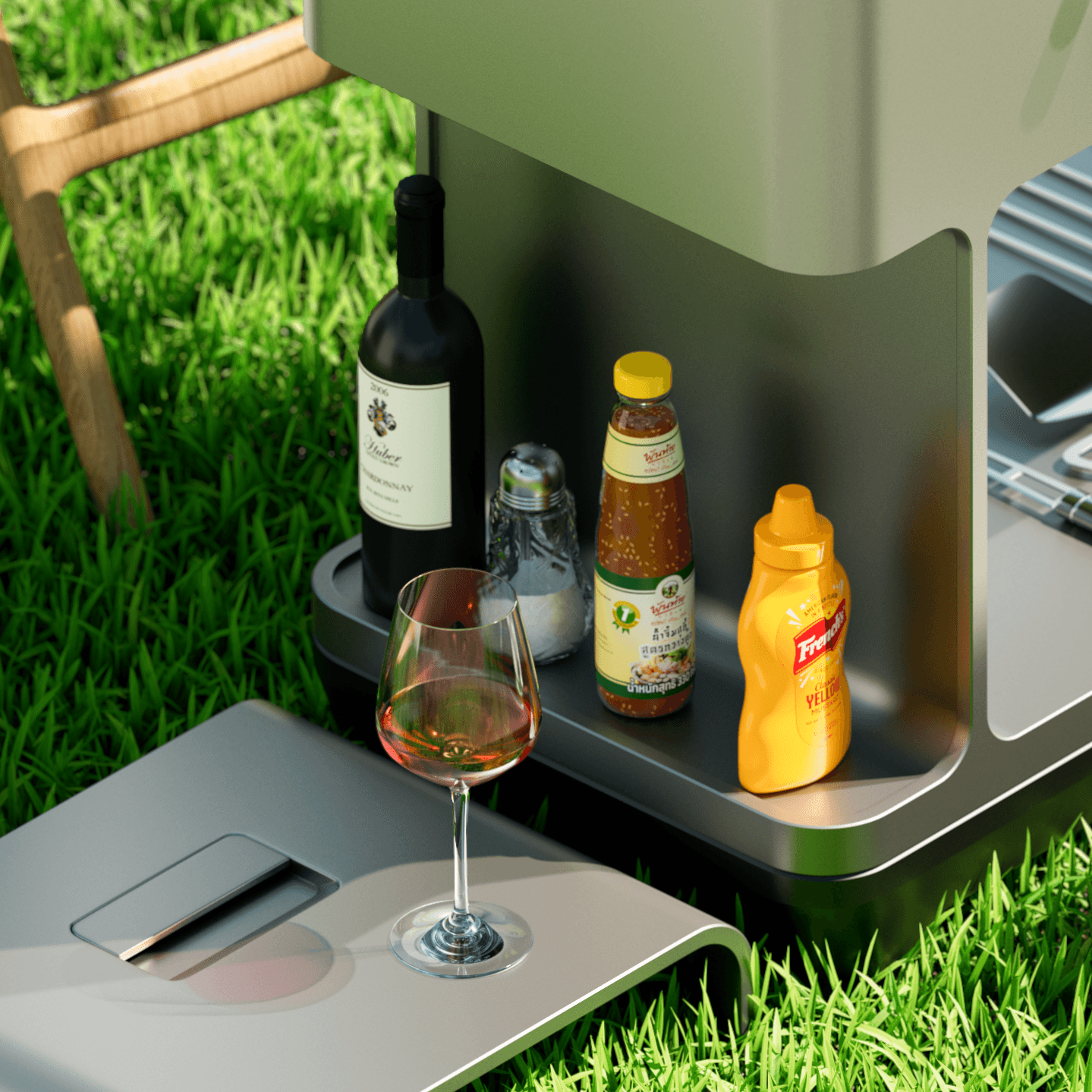 The product was designed and sketched by me before being modeled in Maya, BBQ was sculpted in Nomad on iPad, textured in Substance Painter and Maya, rendered with V-ray, and color corrected and dept-of-field adjustment in Photoshop.